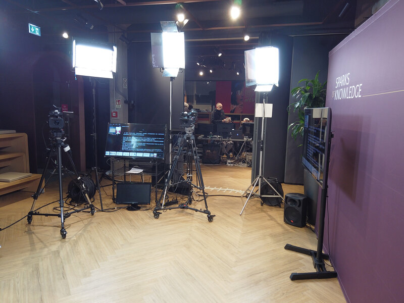 Oltre al service tecnico, offriamo la produzione e gestione dei contenuti: sigle video, grafiche di apertura, intermezzi musicali e materiali di supporto per le presentazioni. Il nostro teatro di posa compatto e attrezzato consente di realizzare prove, registrazioni e shooting collegati all’evento, fornendo un supporto creativo e operativo a 360°. Dal meeting aziendale alla conferenza stampa, dal concerto live alla presentazione di prodotto, accompagniamo il cliente in ogni fase del processo: ideazione, progettazione, produzione e messa in onda.